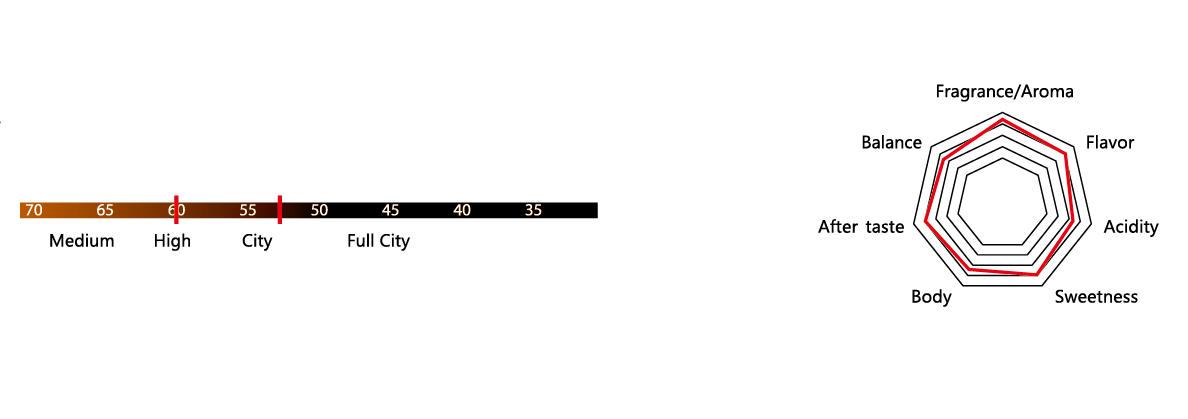 Coffee Floral(咖啡花香) Red Apple(紅蘋果) Blueberry(藍莓) Honey(蜂蜜) Creamy(奶油) Milk Chocolate(牛奶巧克力) |